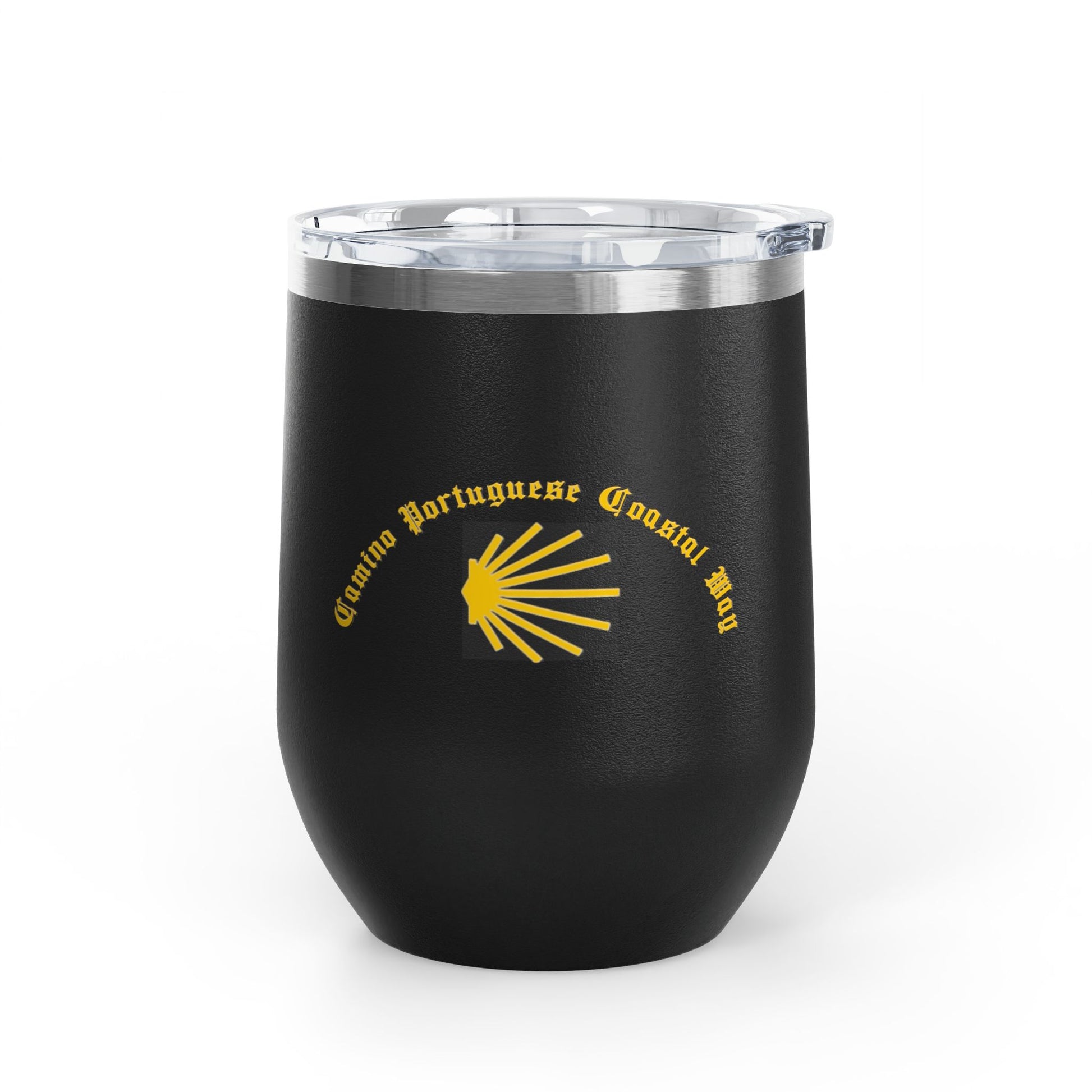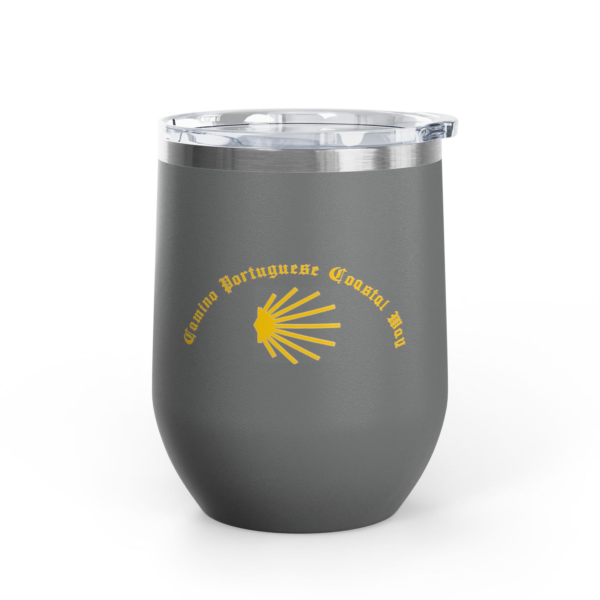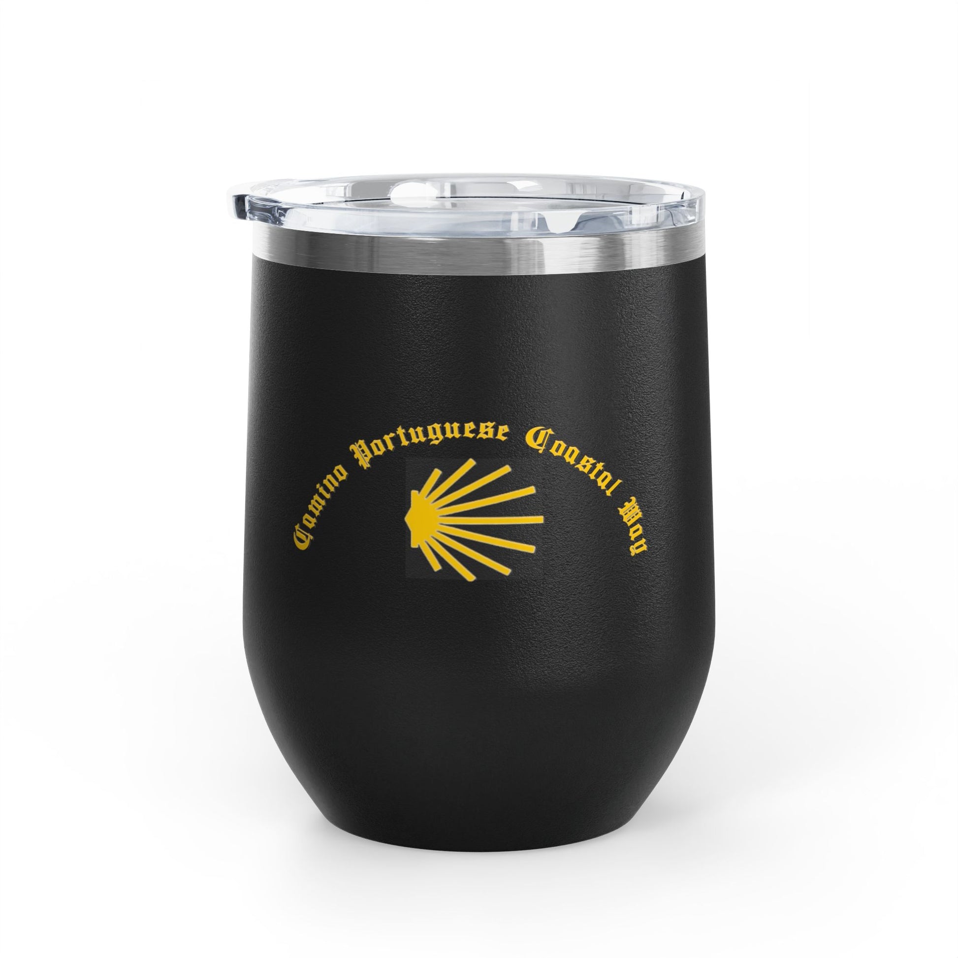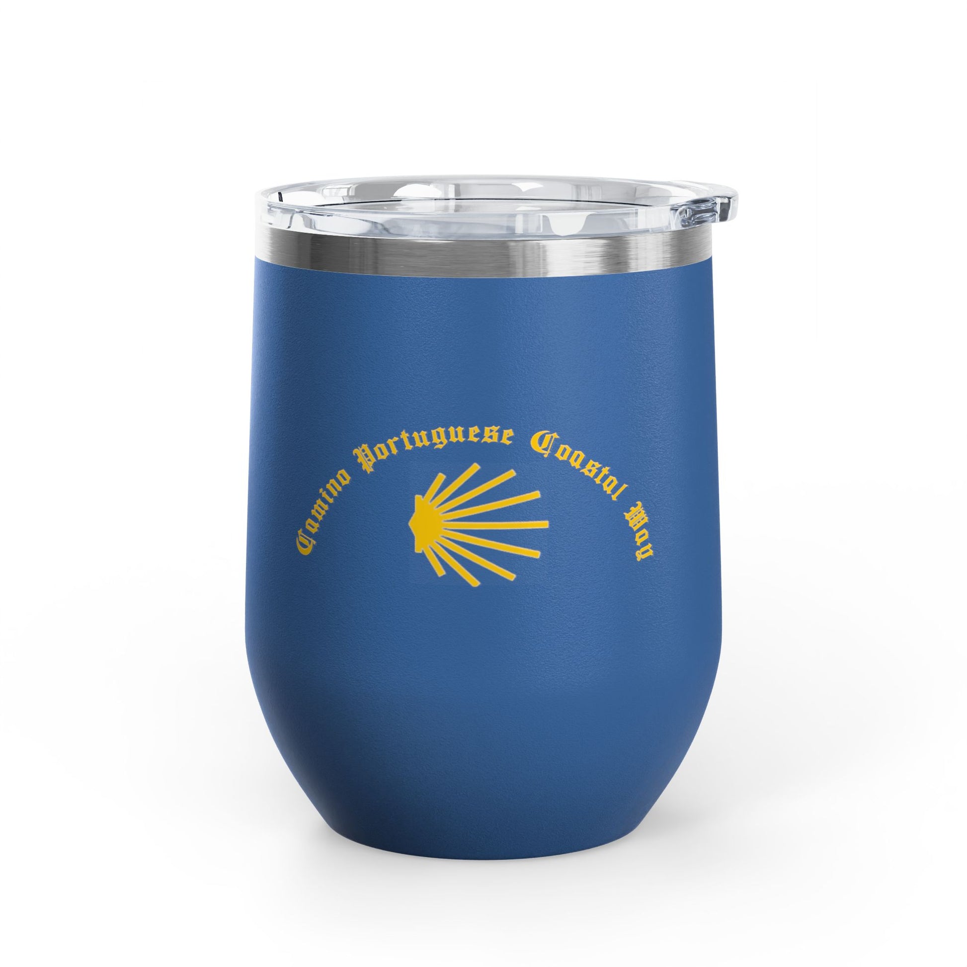 Camino Portuguese Coastal 12oz Wine Tumbler, Peregrino Cup for Pilgrims, Travelers, Wine Lovers, Lidded 12 oz.
